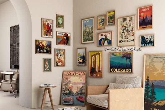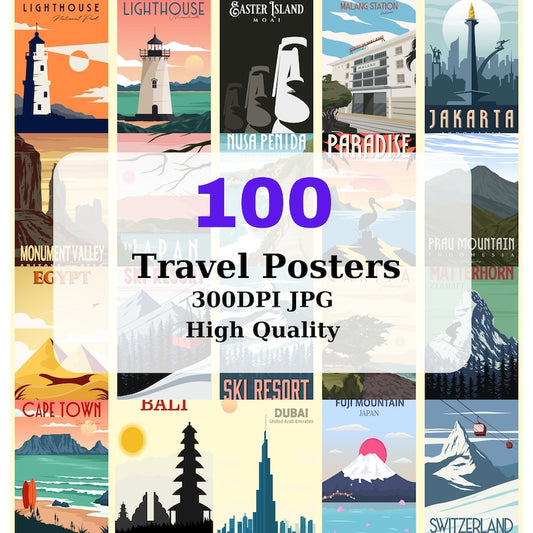 100-Piece Retro Vintage Travel Poster Collage for Wall Decor